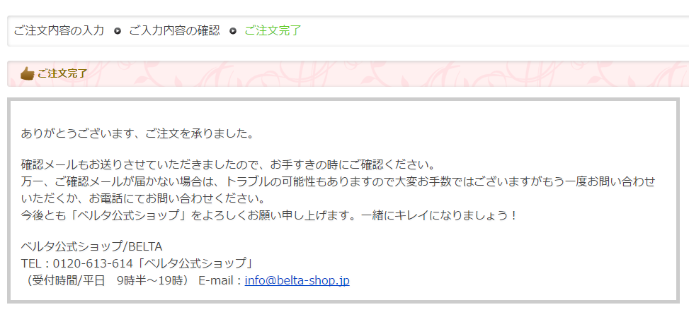 これで、記入したメールアドレスに以下のような注文完了のメールが届きます。